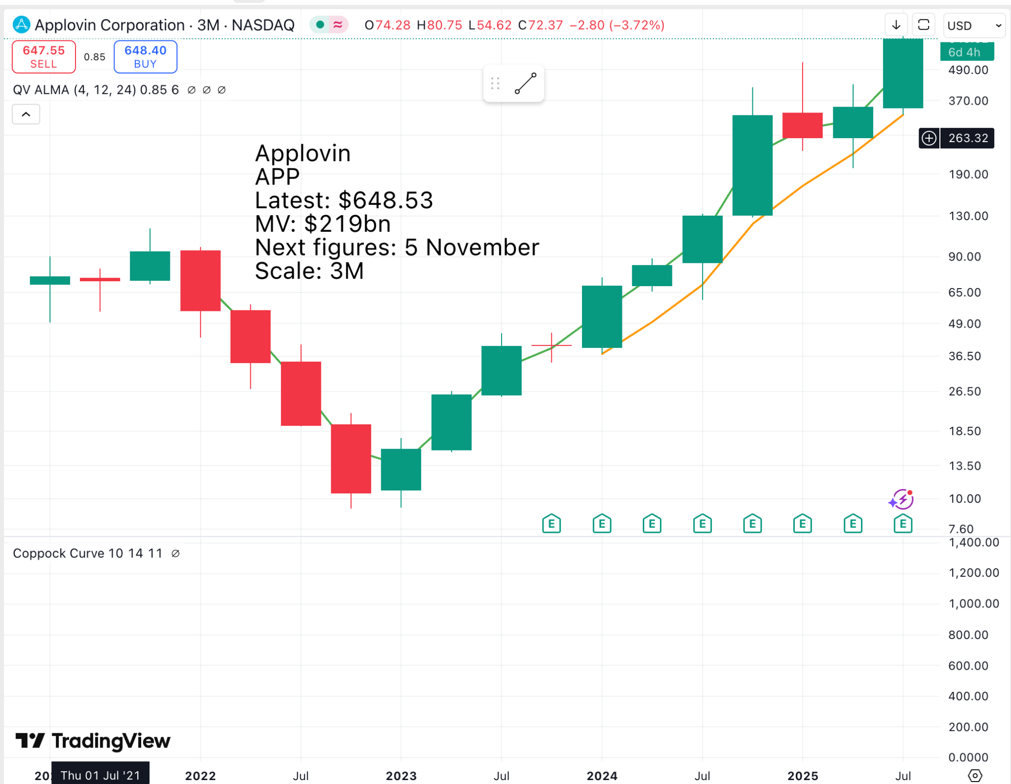 I see parallels between Palantir and Applovin. Both companies use AI to achieve great results for their customers and grow rapidly because those results are so great. What is unusual with Applovin is that we have some key dates ahead . On 1 October 2025, the group launches its new product, in time for Q4 2025, to be reported early February 2026.