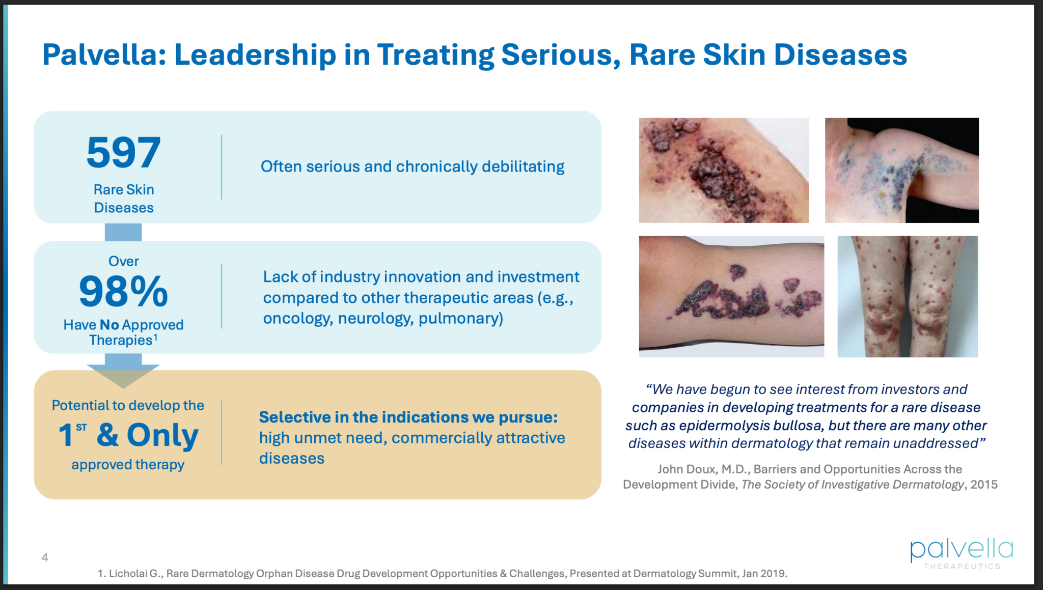 However, Argenx has demonstrated that much can be achieved from small beginnings. Furthermore, the absence of current treatment options makes it easier for Palvella to progress rapidly through the regulatory process.