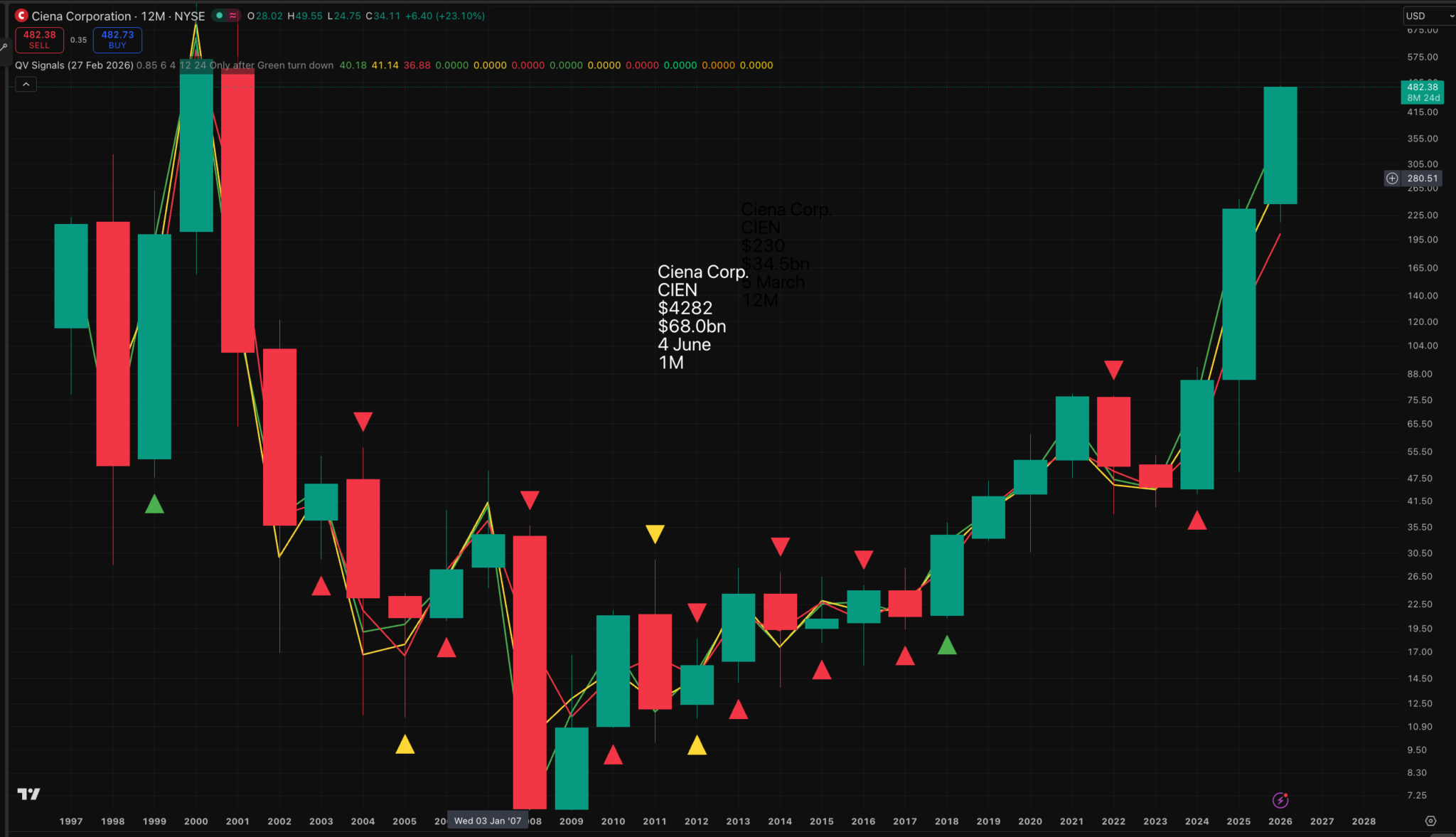 This is a massive chart breakout after over two decades of consolidation. It doesn’t take a rocket scientist to grasp that something is happening at Ciena Corporation – a massive ‘something new’.