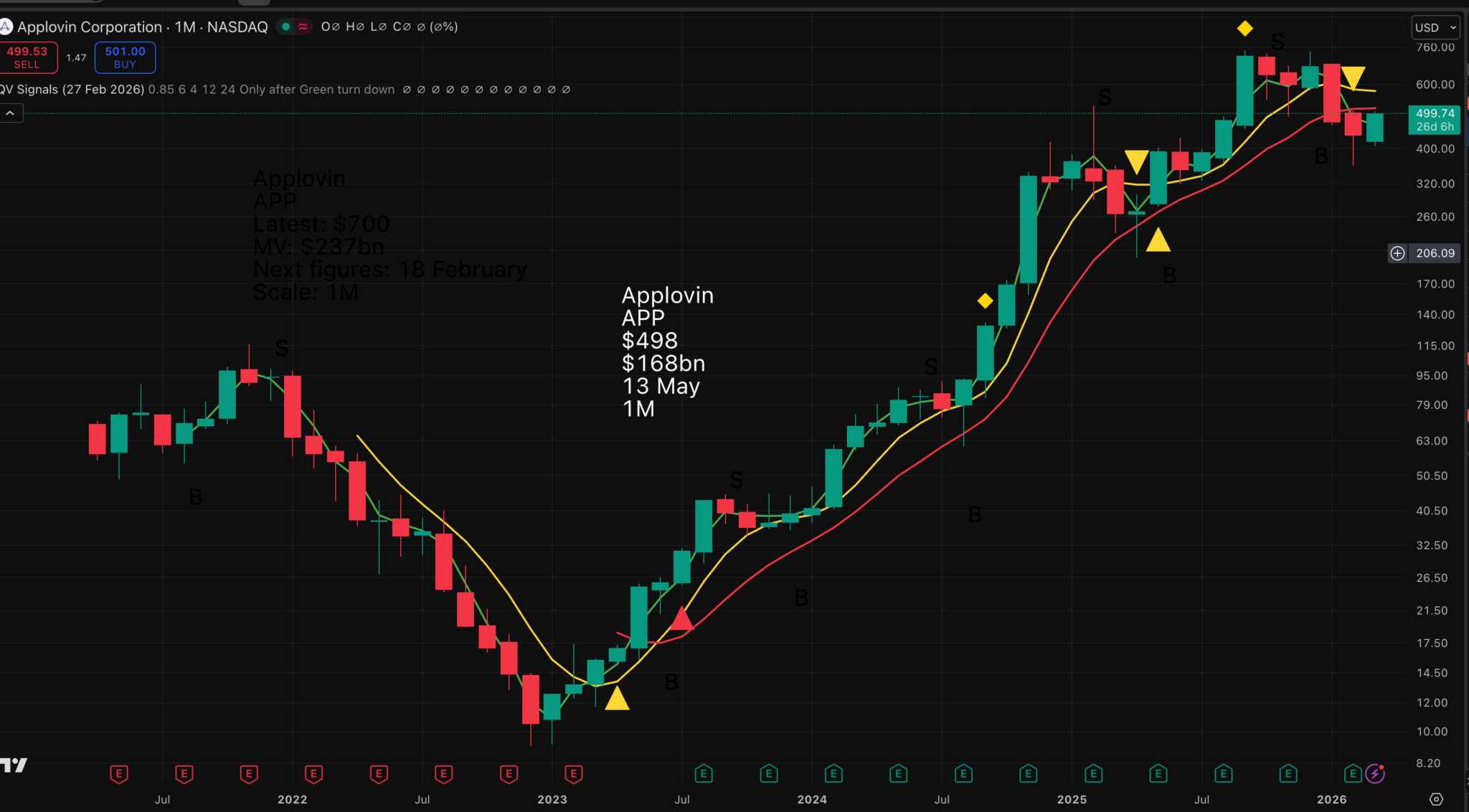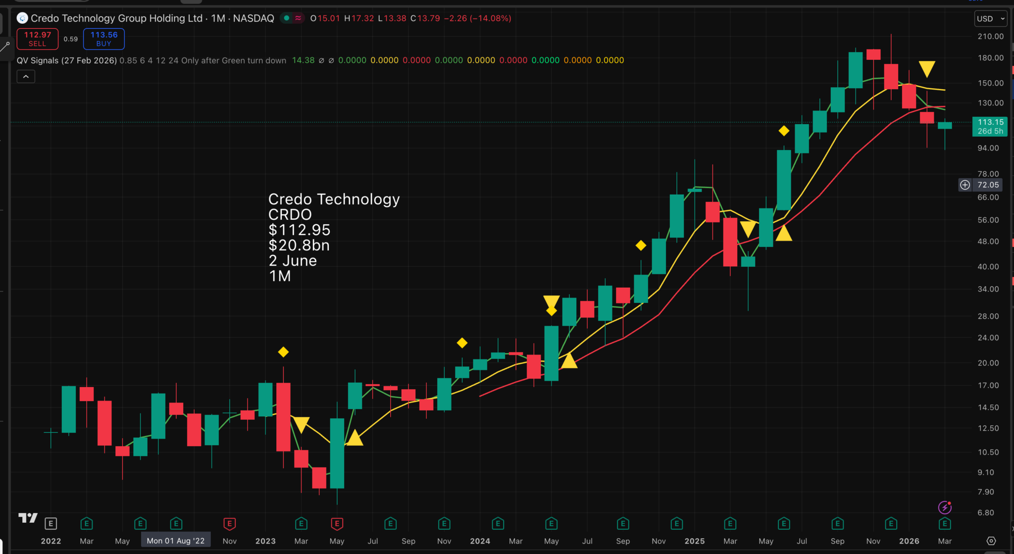 Fact 3 – The fundamentals are spectacular, so what about the chart? My idea is that we buy when the chart and fundamentals are pointing in the same direction. This is not happening yet, but it is close. It is super-tempting to buy now, and maybe why not, but support from a yellow line buy signal would be the final brick in the wall.