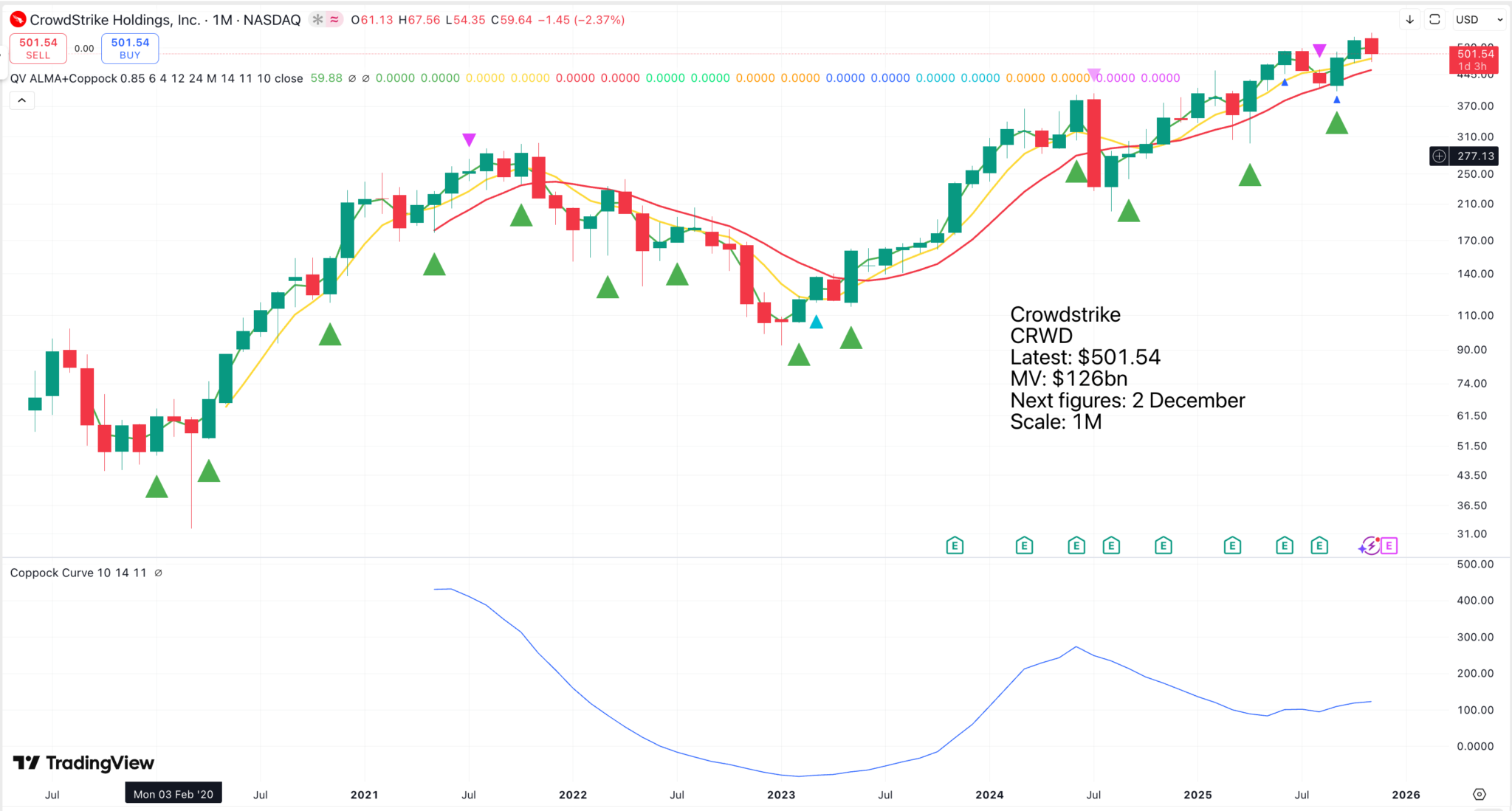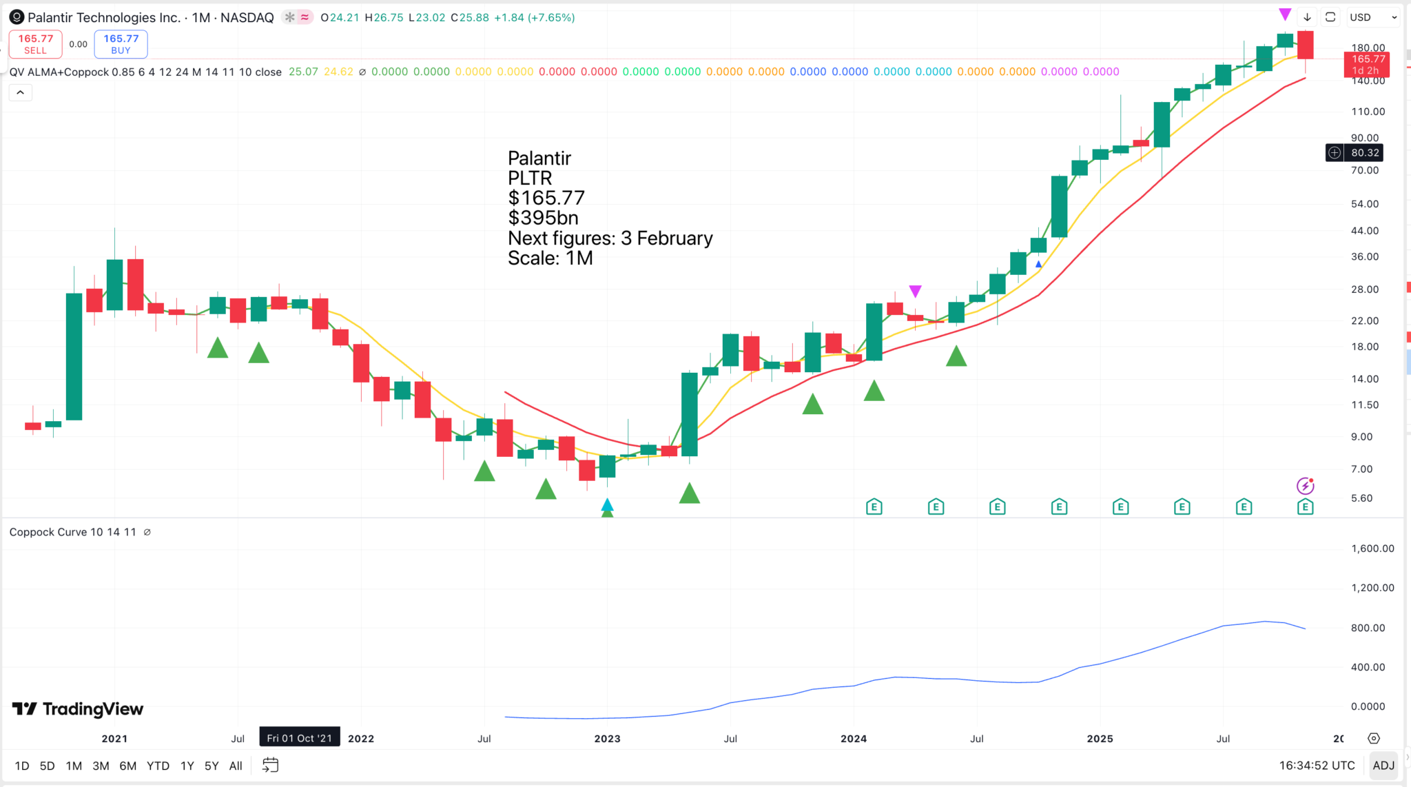 We have a Coppock sell signal on the Palantir chart. I remain a raging bull of Palantir on the world-beating fundamentals, but you could make a precautionary sale on the understanding that you buy when Coppock turns higher again, and no hard feelings if the shares are more expensive when you do.