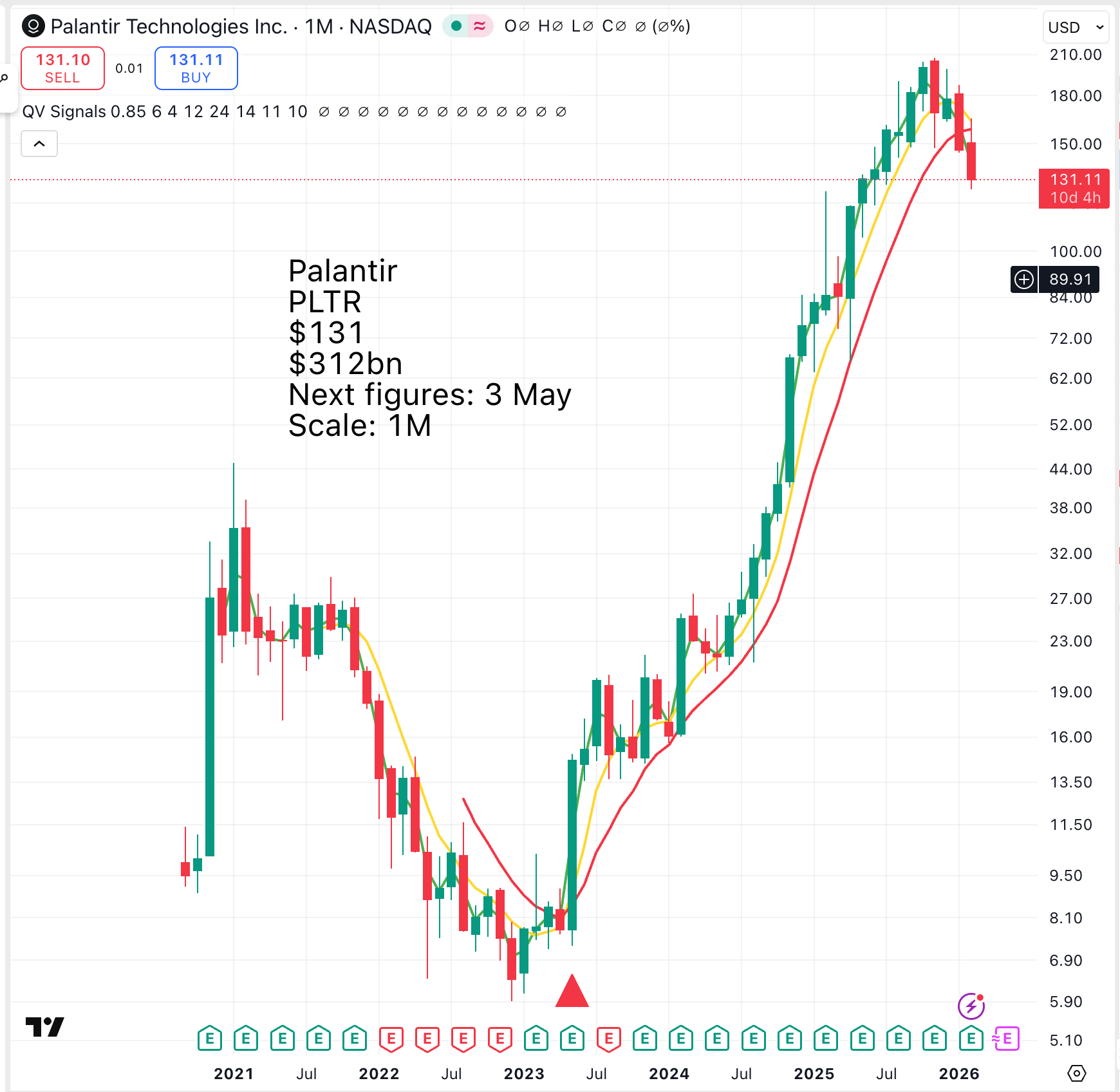 In light of this, we can understand better what is happening to Palantir shares. The growth has been everything investors could have wished for but like Bitcoin, the share price is not solidly rooted in fundamentals but reflects investor optimism about the 10-year outlook for this incredible business. If investors are no longer prepared to look 10 years ahead, a valuation in the hundreds of billions for a company with sales of less than $10bn can be vulnerable. The shares have been sliding since October 2025.