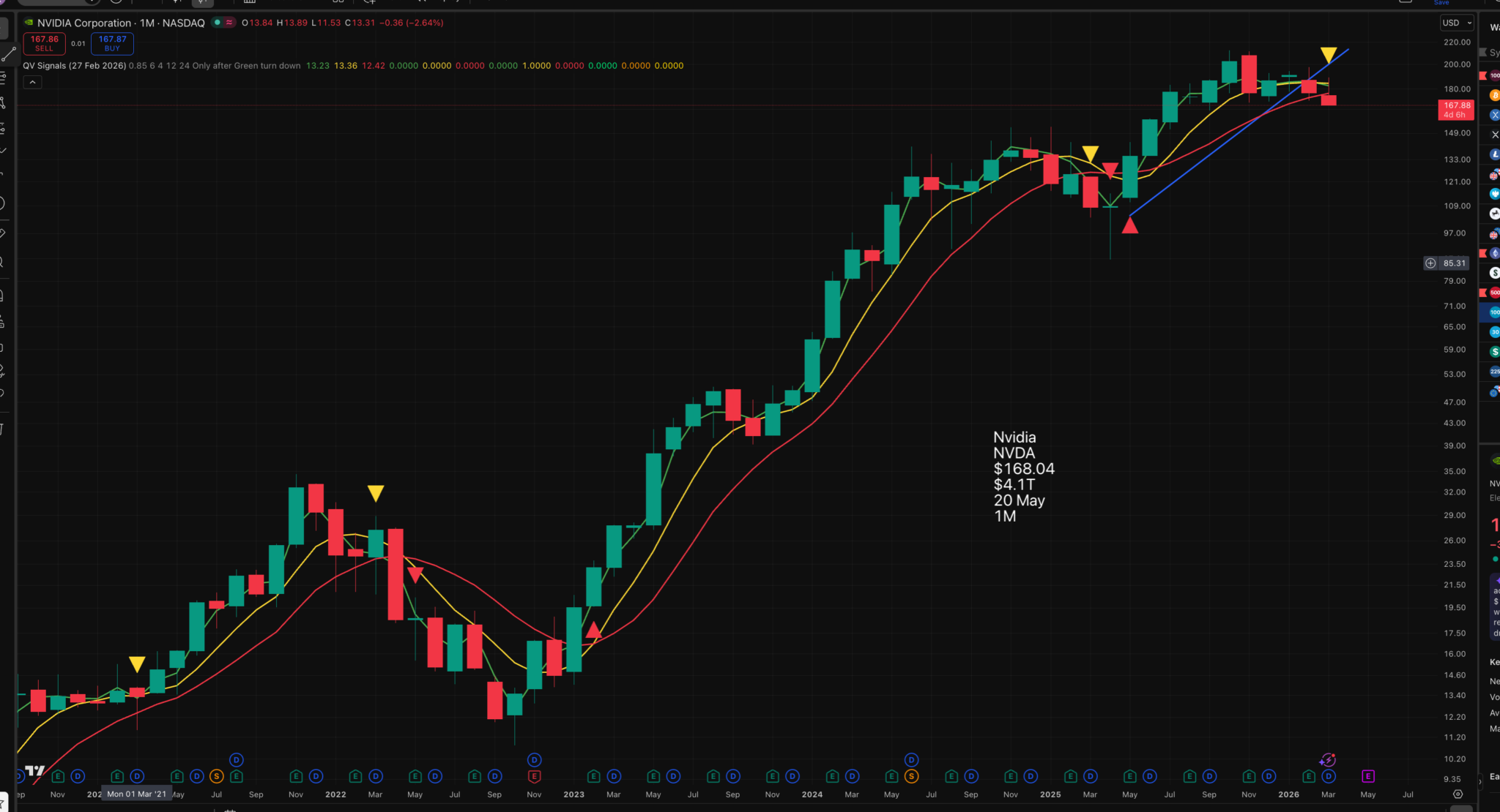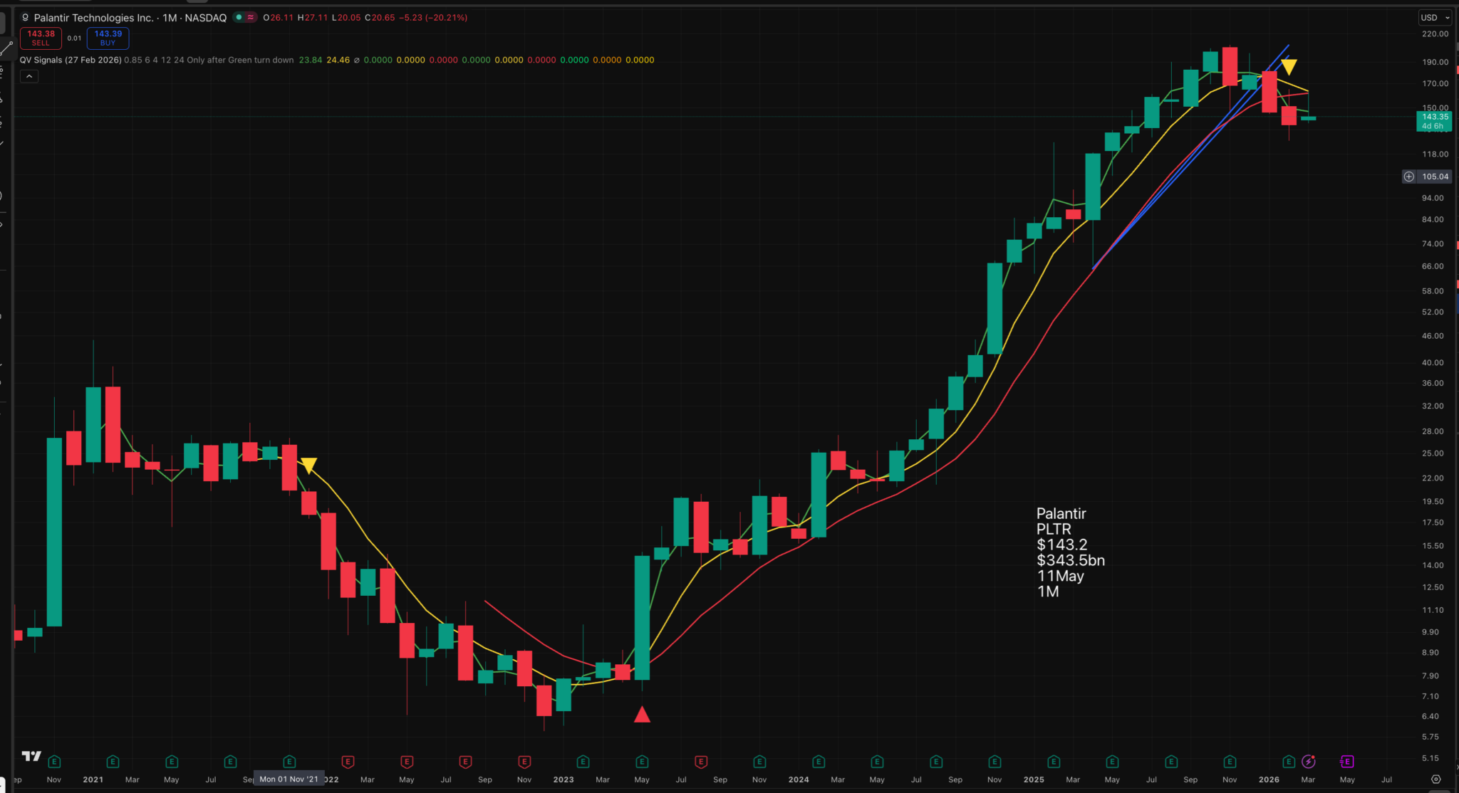 Palantir and Nvidia chats look increasingly negative. They can bounce from here, but they haven’t done so yet, and as successive rallies run out of steam, investor confidence will drain away