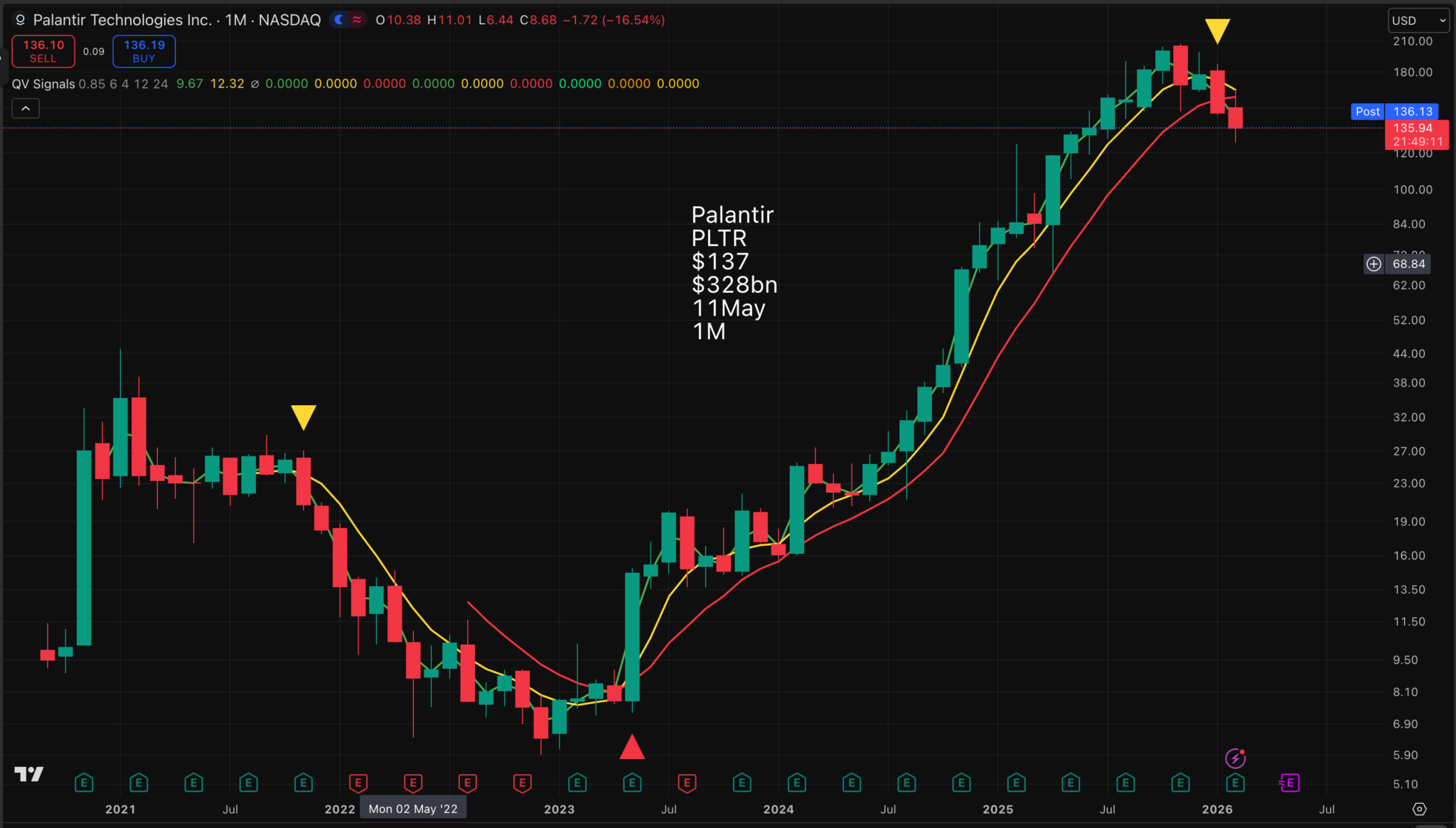Palantir is in a similar position to Nvidia with even more breathtaking fundamentals but the chart has deteriorated further.