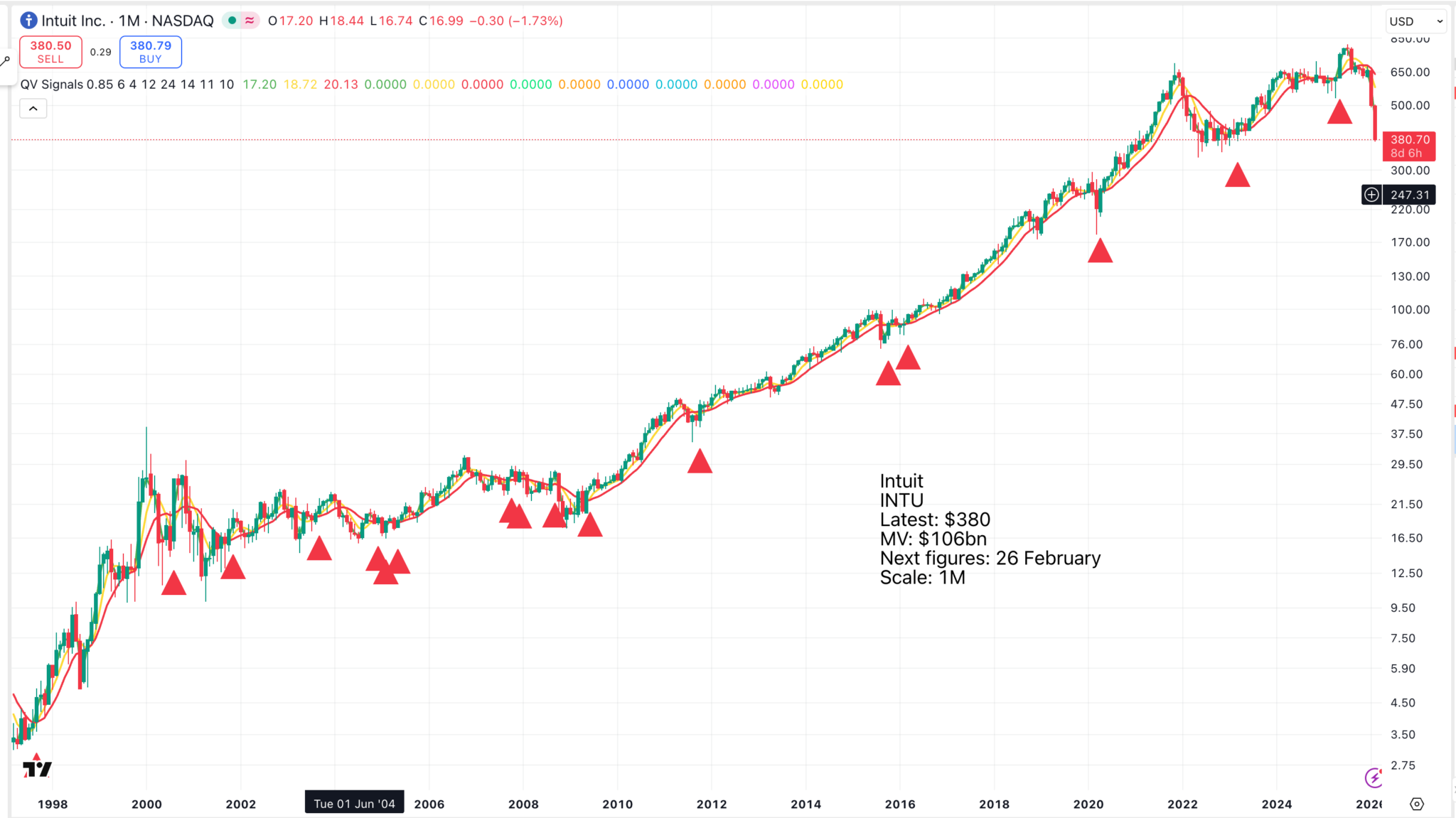 Intuit’s sharp slide over the past year has been driven largely by AI anxiety. Investors fear that generative AI could disrupt traditional financial software models, even though that threat hasn’t materially surfaced in the company’s actual results.