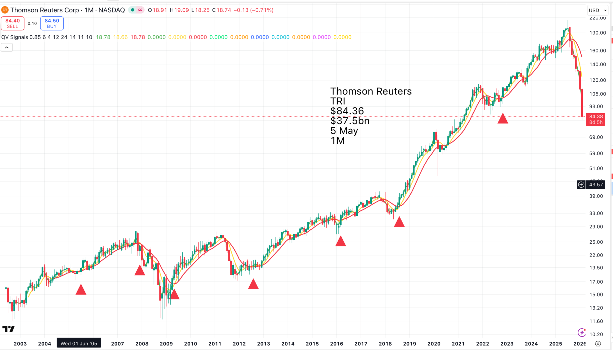 Thomson Reuters TRI fell over 26% recently as analysts questioned whether AI could now synthesise case law and draft legal filings at a fraction of the cost of the company’s premium subscription services.